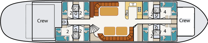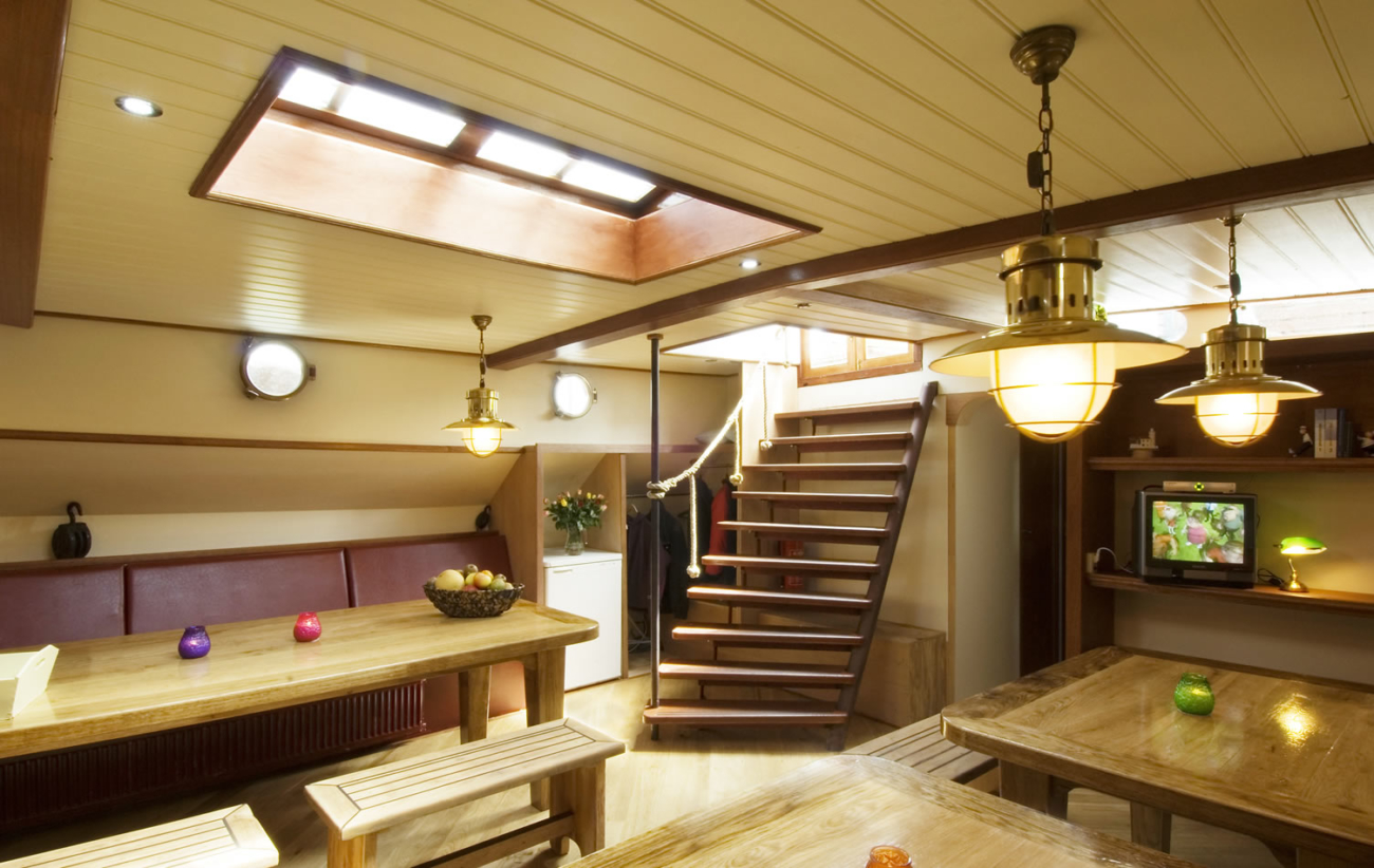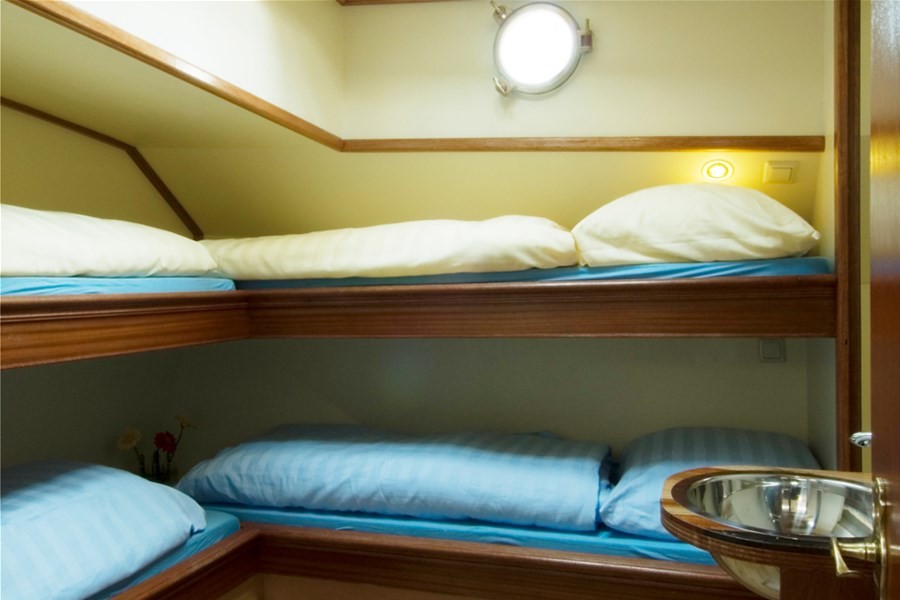 On board, there are 20 sleeping places spread across 6 double cabins and 2 quadruple cabins, each with access to one of the four showers and toilets. Thanks to central heating, the entire ship stays comfortably warm even during the low-season.