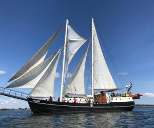 The traditional rigging and robust underwater hull make this two-masted staysail schooner a particularly seaworthy sailing vessel. Thanks to its hull shape and length, the Meander moves smoothly in a seaway. The easy handling of the sails and the good sailing characteristics mean that even people without sailing experience can actively participate in sailing.